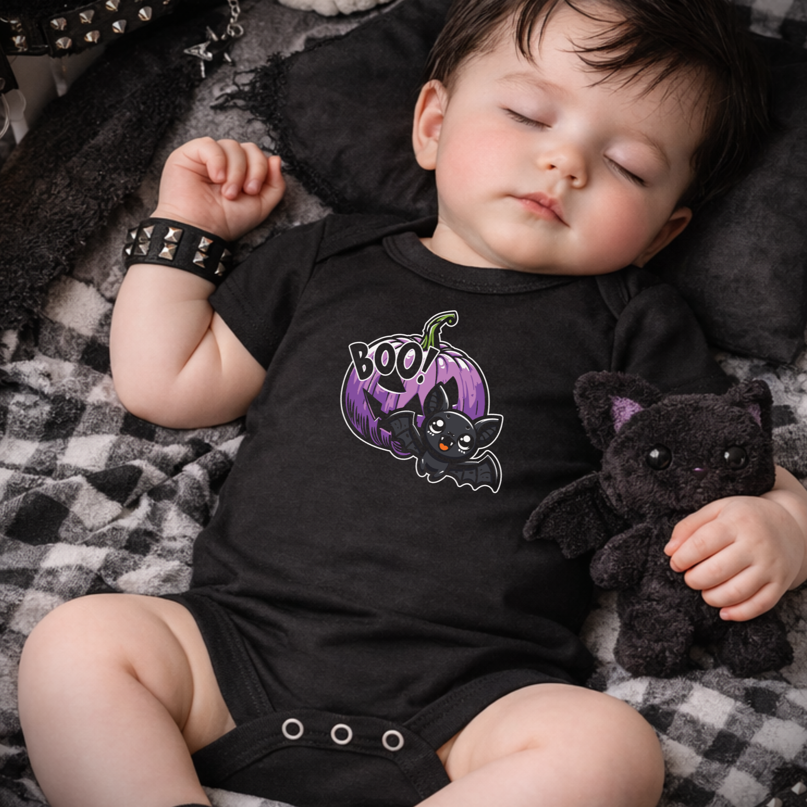 Designed for alternative families who prefer darker style over traditional baby clothes, this spooky baby vest is ideal for Halloween babies, gothic baby outfits, or spooky newborn gifts.
