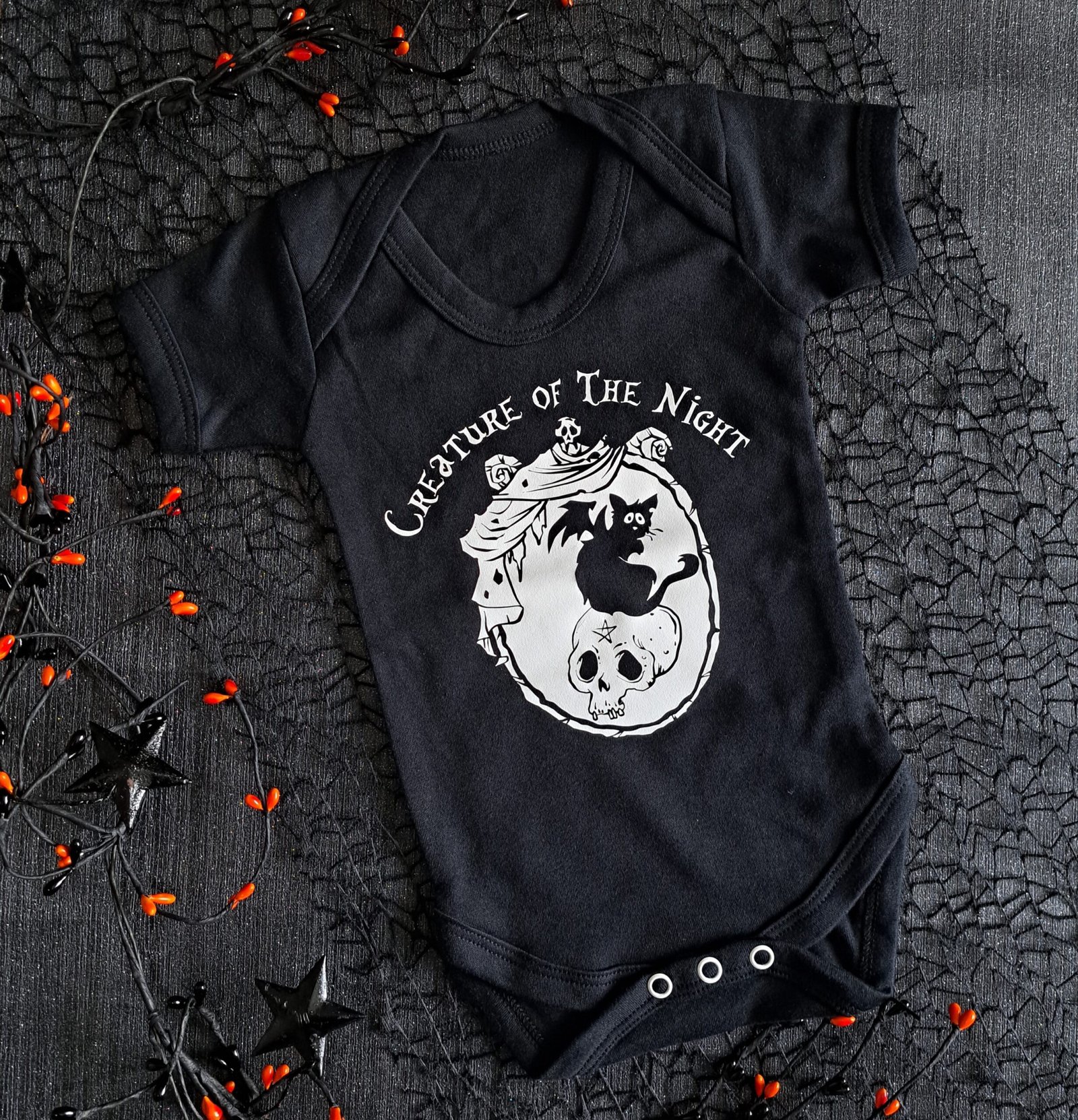 Gothic Baby Vest – Black Cat Creature of the Night Babygrow