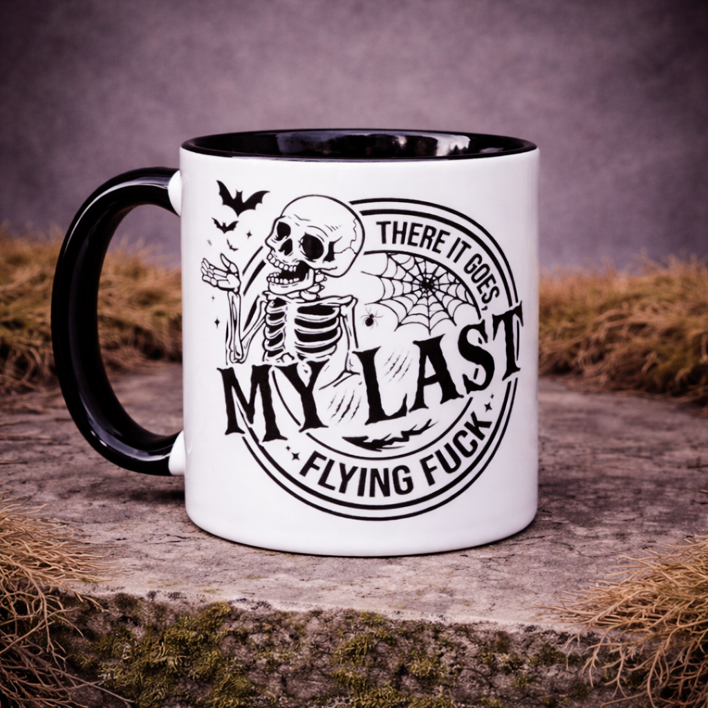 My Last Flying Fuck Mug – Funny Skeleton Coffee Cup