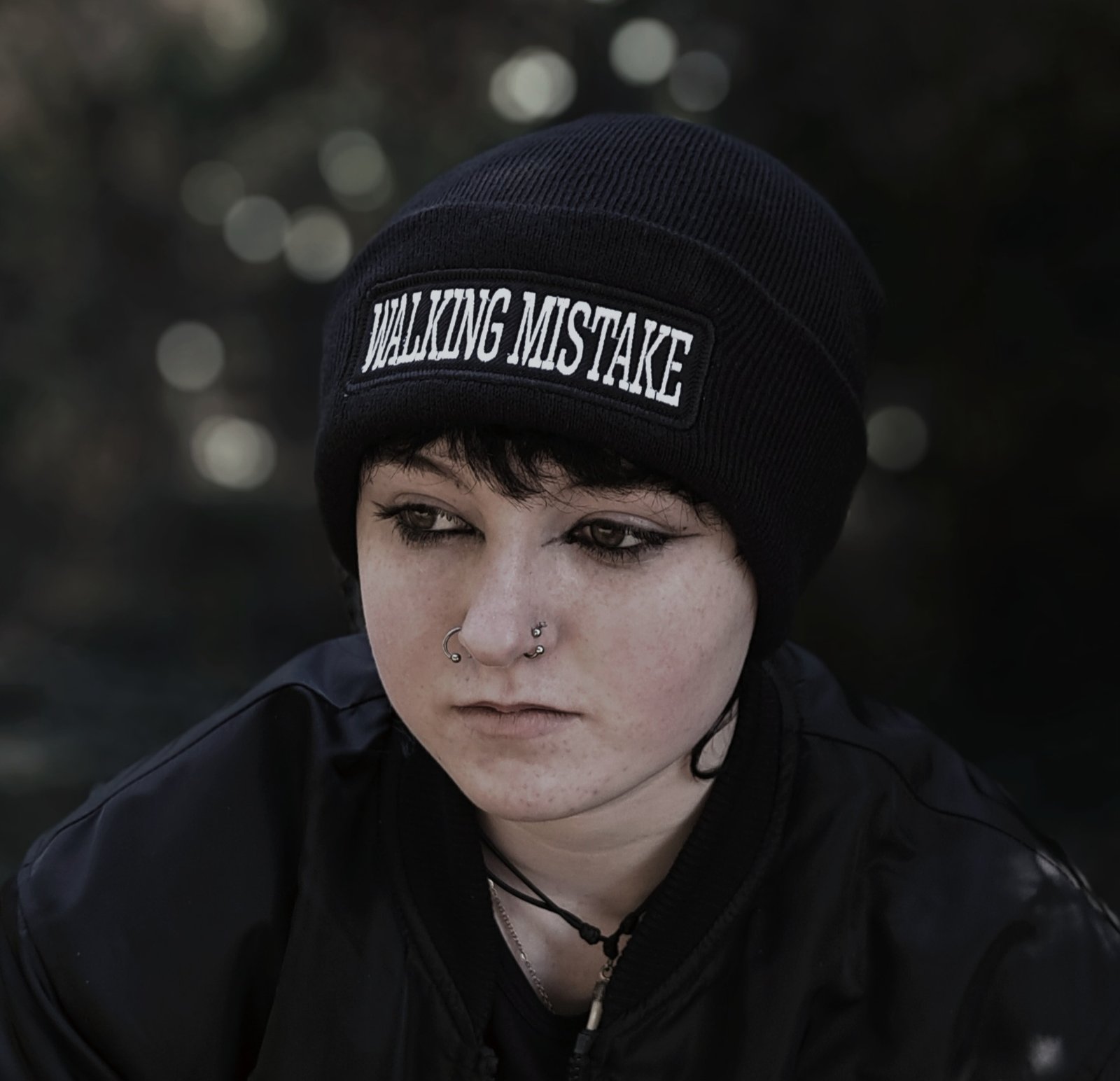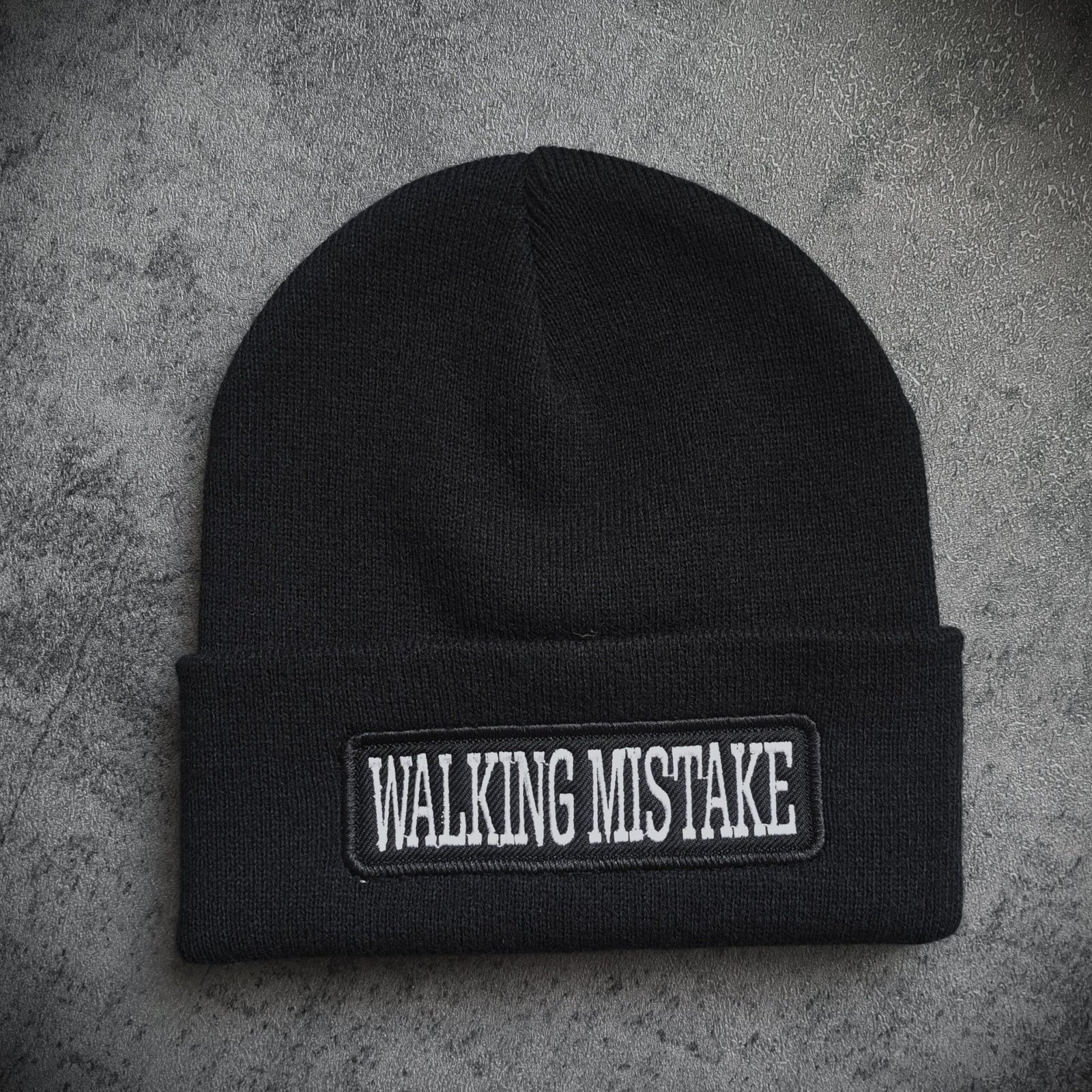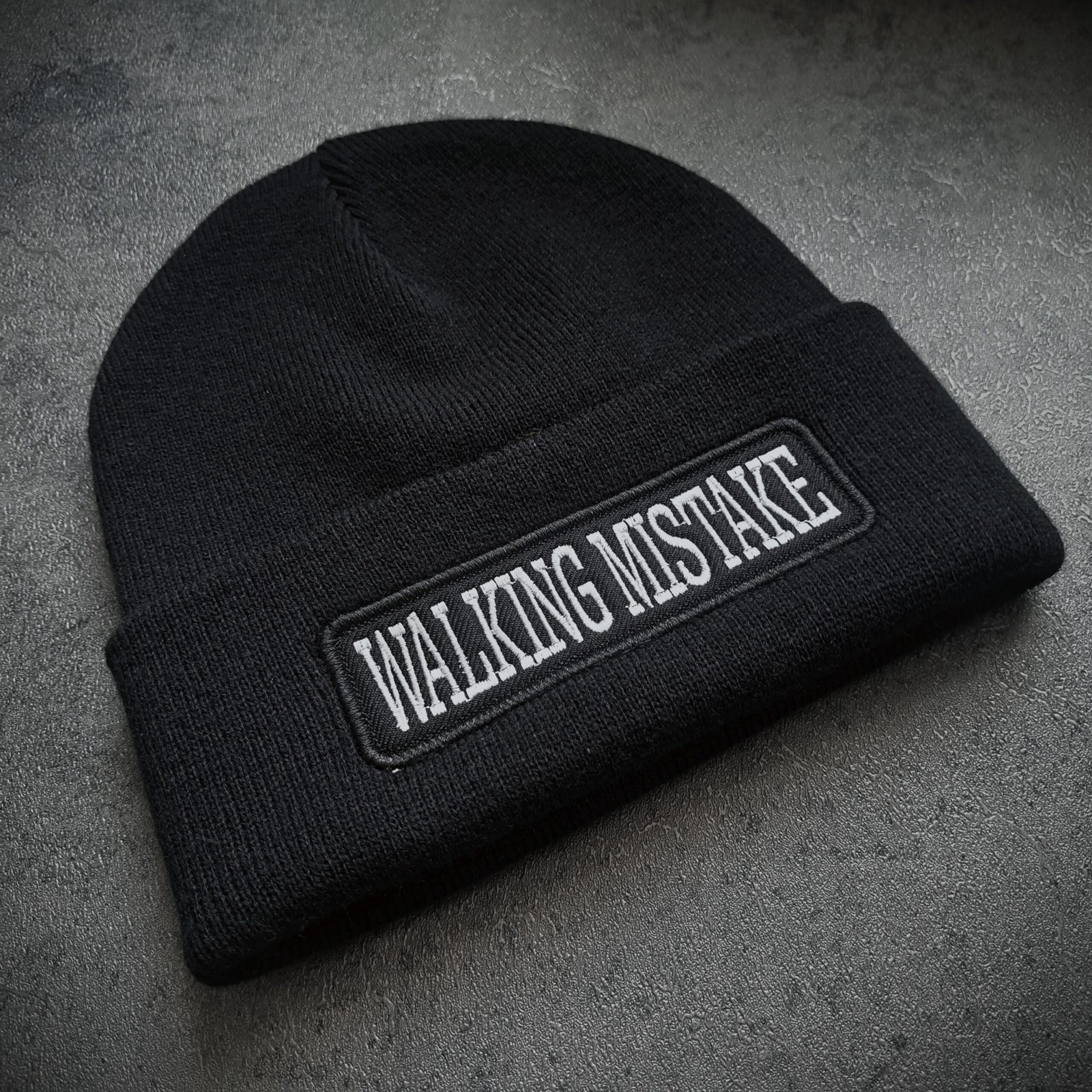 Make a statement without saying a word with this gothic beanie hat, featuring a bold Walking Mistake embroidered patch across the front. Designed for alternative style and everyday wear, this beanie keeps things simple, clean and unapologetic.